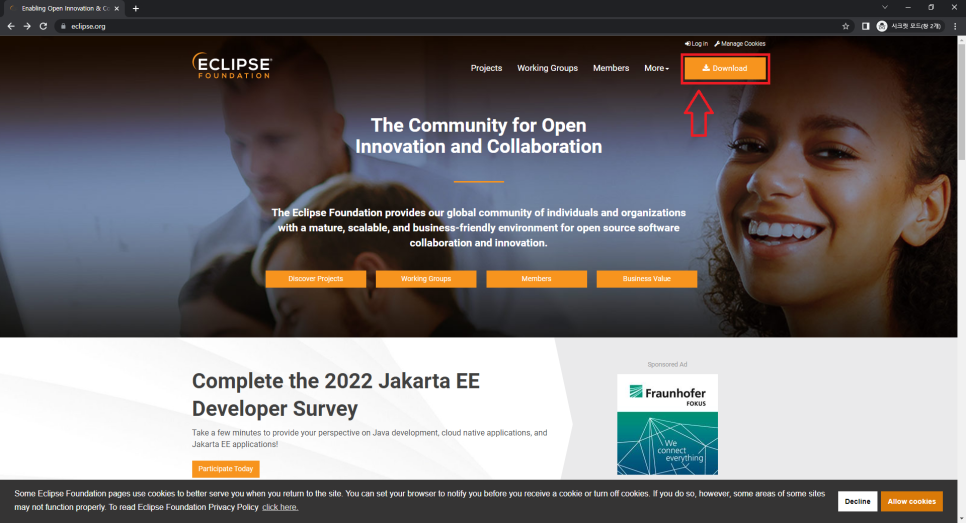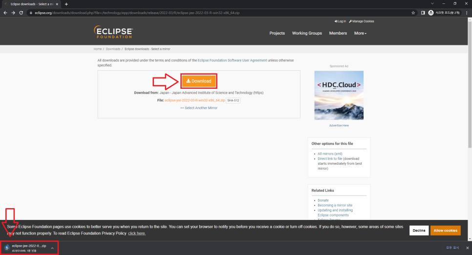 - 해당 글에서는 JavaEE IDE를 다운 받음 (따라오세요)