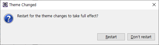 - Theme를 자신의 마음에 드는 테마로 바꿈 (간지나는 Dark 설정, 창이 뜨면 재시작(restart) 하고와도 됨)